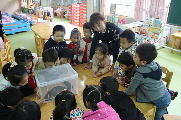 课堂生动幽默,特别是问答环节幼儿们表现十分生动。为配合科普宣传,执法人员经过拉横幅、发放宣传彩页、展开有奖问答等方式同幼儿们中止互动和科普。