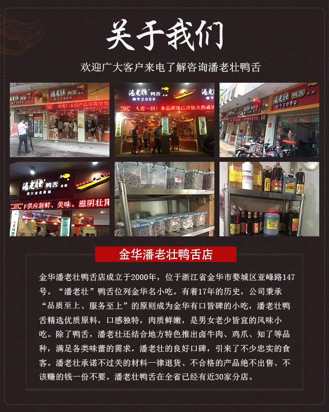 本网页所展示的有关【浦江小吃-潘老壮鸭舌加盟方式-美食小吃加盟_鸭肉_金华市婺城区潘老壮鸭舌店】的信息/图片/参数等由农产品之家的会员【金华市婺城区潘老壮鸭舌店】提供,由农产品之家会员【金华市婺城区潘老壮鸭舌店】自行对信息/图片/参数等的真实性、准确性和合法性负责,本平台(本网站)仅提供展示服务,请谨慎交易,因交易而产生的法律关系及法律纠纷由您自行协商解决,本平台(本网站)对此不承担任何责任。您在本网页可以浏览【浦江小吃-潘老壮鸭舌加盟方式-美食小吃加盟_鸭肉_金华市婺城区潘老壮鸭舌店】有关的信息/图片/价格等及提供【浦江小吃-潘老壮鸭舌加盟方式-美食小吃加盟_鸭肉_金华市婺城区潘老壮鸭舌店】的商家公司简介、联系方式等信息。