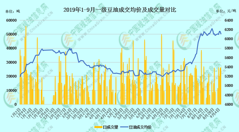 受猪瘟疫情等因素影响,7-8月国内部分油厂尤其内陆部分厂商因豆粕胀库及停机检修,大豆压榨量下降,加之开学、中秋备货令终端包装油提货加快,国内豆类油脂库存逐渐下降。近期中秋备货基本结束,豆油库存有所回升,但随着国庆备货及今年较早的春节备货,市场对后期国内食用油脂供需基本面仍较看好。据国家粮油信息中心9月6日报进口豆油港口交货价格约6220元/吨,这将抑制国内豆油价格上方空间,而粕落挺油及市场看好的基本面,则将令已在8月升至新台阶的豆类油脂价格较难回归至7月前,短期国内油脂或跟随消息面炒作维持震荡趋势。