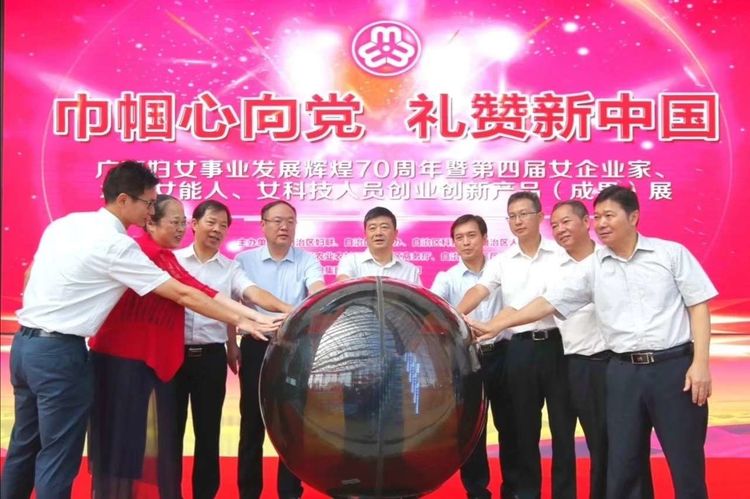 2019年9月,自治区妇联、自治区文明办、人社厅、科技厅、农业农村厅、文化和旅游厅、商务厅、科协等8部门在广西科技馆联合举办“巾帼心向党 礼赞新中国”一一广西妇女事业发展辉煌70周年暨第四届女企业家、城乡女能人、女科技人员创业创新产品(成果)展,庆祝中华人民共和国成立70周年。自治区副主席方春明出席开幕式并宣布展览开始,自治区妇联主席刘咏梅主持开幕式。开幕式上,中国邮政广西分公司与广西女企业家协会、广西女能人协会签订了战略合作框架协议。