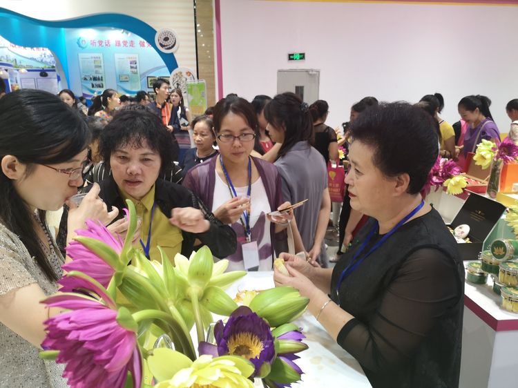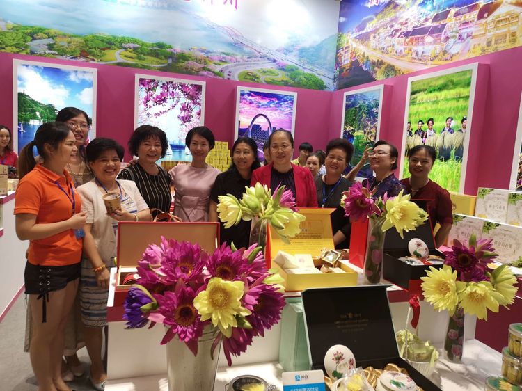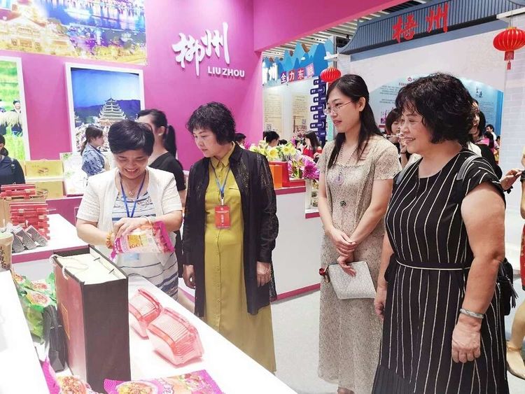 本次大展,柳州市妇联结合柳州女性创业创新行业特点,凝聚巾帼力量,设计和布置了柳州馆,柳州女企业家协会会员单位:广西甲正王经贸有限公司甲正王系列产品,广西山上人商贸有限公司淮山面、柳州嘉沃农业科技有限公司的黄金百香果、广西好好农业有限公司侗寨油茶、广西观音香莲生态农业科技有限公司的九品香莲系列产品、柳州市美申园食品科技有限公司美申园螺蛳粉系列产品参展。