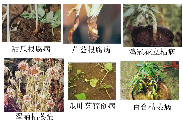 蔬菜、瓜类:立枯病、猝倒病、根腐病、枯萎病、霜霉病、疫病、蔓割病;