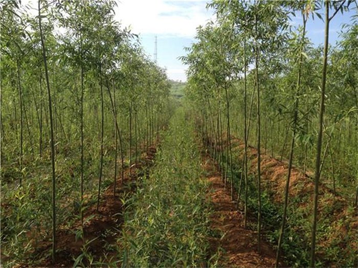 二、生产把材。把材就是杈把、铣把等把子用材,速生竹柳多少钱一吨,每根长1.5至1.7米,粗度为5公分,现在市场上每根把子的价格均在4至6元左右。行距、株距按50x50公分栽植,每亩可栽种2600株,生长3年每株的粗度就能达到6--10公分,高度可达到8至10米,每株高峰竹柳可产出把子6至7根。照这样计算每亩可产标准把子1.5万根,如果按每根把子5元计算,栽培一亩地的竹柳把材两年的产值也能达到6至7万元,平均每亩每年2万元以上。