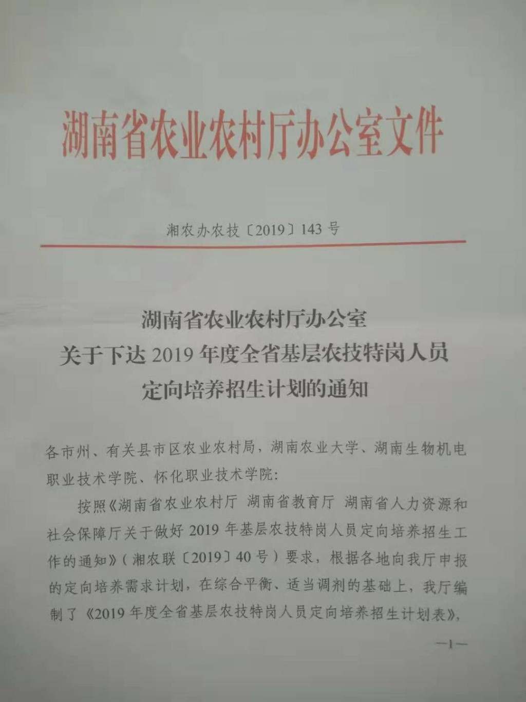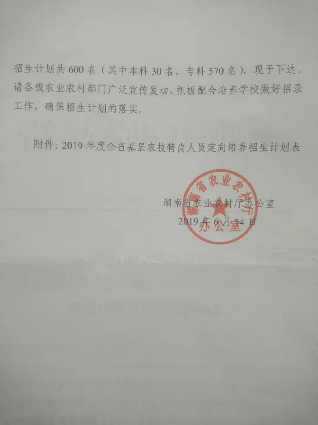 核心提示:6月14日,湖南省省农业乡村厅办公室正式下达2019年度全省基层农技特岗人员定向培育招生方案。桑植县定向培育招生7名人员,触及园