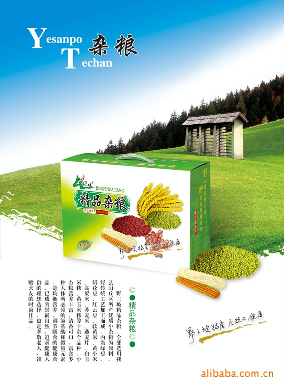 精品杂粮:野三坡精品杂粮全部选用河北涞水县山丘区所产优质小杂粮为原料,经传统工艺精制而成。内装明绿豆、奶花豆、红芸豆、黄小米、高粱米、荞麦米、燕麦片、大黄米、白马芽玉米糁、黄玉米糁等十余个品种。小杂粮营养丰富、清香可口,富含多种人体必需氨基酸和微量元素。是均衡营养、调节膳食结构的健康食品。已成为崇尚自然、追求健康人群的理想选择,也是孝敬老人、馈赠亲友的时尚佳品。
