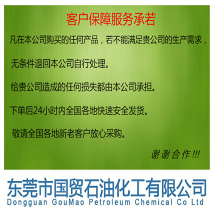 我公司总部创于1998年的6月1日,成立以来一直本着"做事先做人·诚实守信·求真务实’’的原则,承蒙广大新老客户的厚爱与支持,经过20多年来艰苦创业已经发展成为总部拥有员工1000多人,技术核心人员100多人,厂房接近上万平方米的中型企业,现分公司东莞市国贸石油化工有限公司正大步面向全国各地市场发展中。集生产·销售类化工溶剂·机械油类产品于一体,拥有日本进口各先进的生产检测仪器·分析仪器·检测技术等,在同行业中处于**地位。
