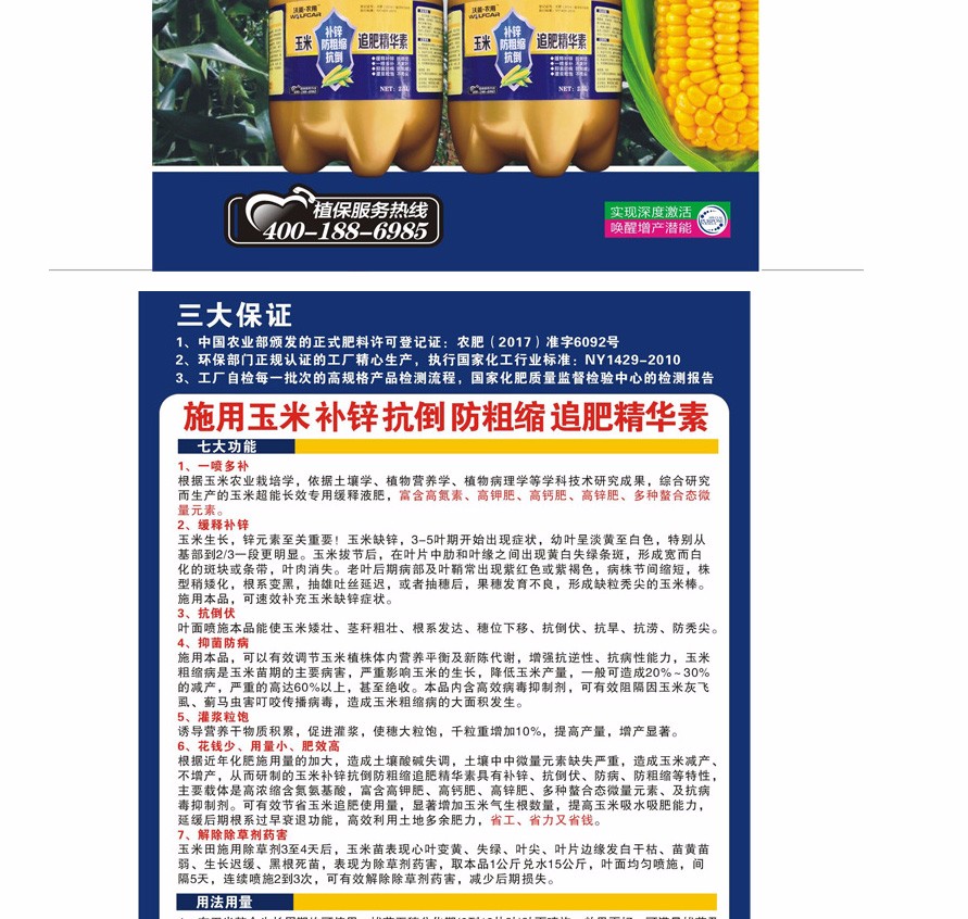 本网页所展示的有关【玉米专用肥料 防粗缩 抗倒 追肥精华素叶面肥 喷施肥_杀虫剂_河南嘉诚农业科技有限公司】的信息/图片/参数等由农产品之家的会员【河南嘉诚农业科技有限公司】提供,由农产品之家会员【河南嘉诚农业科技有限公司】自行对信息/图片/参数等的真实性、准确性和合法性负责,本平台(本网站)仅提供展示服务,请谨慎交易,因交易而产生的法律关系及法律纠纷由您自行协商解决,本平台(本网站)对此不承担任何责任。您在本网页可以浏览【玉米专用肥料 防粗缩 抗倒 追肥精华素叶面肥 喷施肥_杀虫剂_河南嘉诚农业科技有限公司】有关的信息/图片/价格等及提供【玉米专用肥料 防粗缩 抗倒 追肥精华素叶面肥 喷施肥_杀虫剂_河南嘉诚农业科技有限公司】的商家公司简介、联系方式等信息。