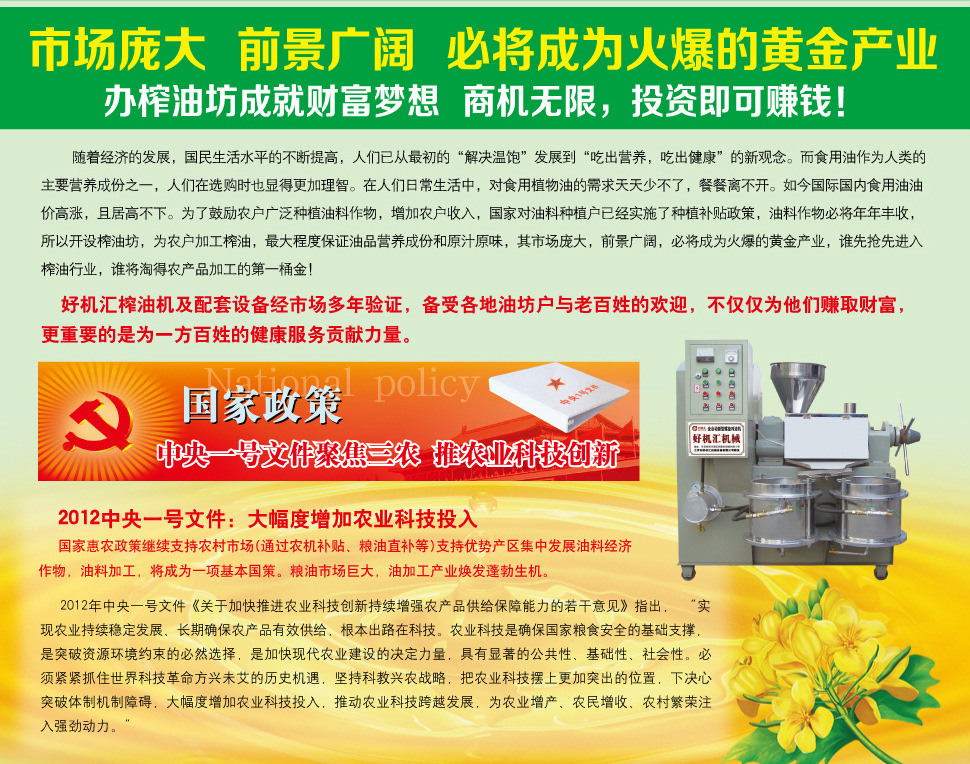 本网页所展示的有关【优质榨油机 全自动大豆榨油机 玉米榨油机设备 一体榨油机 冷榨油设备 自动化榨油设备_食用油加工设备_武汉火车头科技有限公司】的信息/图片/参数等由农产品之家的会员【武汉火车头科技有限公司】提供,由农产品之家会员【武汉火车头科技有限公司】自行对信息/图片/参数等的真实性、准确性和合法性负责,本平台(本网站)仅提供展示服务,请谨慎交易,因交易而产生的法律关系及法律纠纷由您自行协商解决,本平台(本网站)对此不承担任何责任。您在本网页可以浏览【优质榨油机 全自动大豆榨油机 玉米榨油机设备 一体榨油机 冷榨油设备 自动化榨油设备_食用油加工设备_武汉火车头科技有限公司】有关的信息/图片/价格等及提供【优质榨油机 全自动大豆榨油机 玉米榨油机设备 一体榨油机 冷榨油设备 自动化榨油设备_食用油加工设备_武汉火车头科技有限公司】的商家公司简介、联系方式等信息。