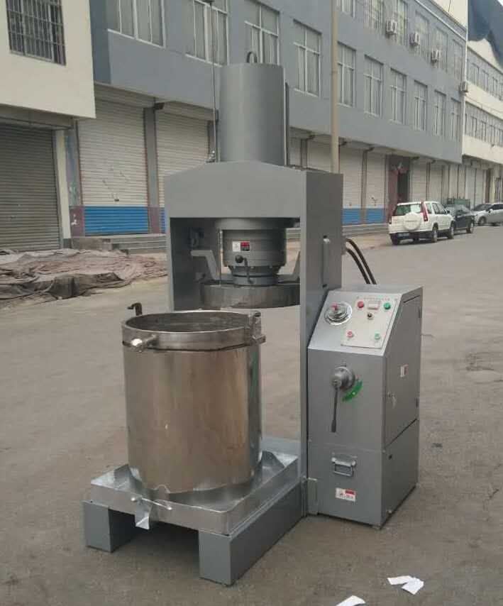 2、 把上墩推到后面,油料装满油圈后,再把上墩拉倒油圈正上面,开动电机,油榨进行榨油工作。