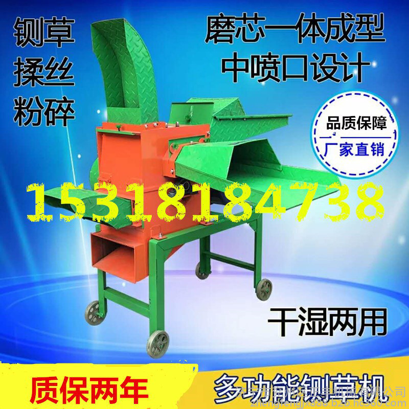 本厂饲料铡草粉碎机均为厂家直销,免除了中间商,生产者直 接与用户见面,简化了流通过程,缩短了流通时间实现了真正的厂家优惠价格。多功能铡草粉碎机(铡草打浆机,铡草揉丝机)是集铡草、揉搓、粉碎、打浆于一体的新型饲料加工机。该机既可以铡切粉碎玉米秸,高粱秸,花生秧、地瓜秧、各种牧草、树枝等,也可以将青鲜玉米秸、豆秸、麦秸、胡萝卜、青菜等及野生杂草揉搓成丝条状饲料供牛、羊采食。秸秆经切断、粉碎后,加大了反刍动物瘤胃内微生物与草的接触面积,有利于降解发酵,从而提高秸秆消化利用率。同时,将秸秆、草料铡碎并揉搓成丝状,提高了饲料的适口性和利用率。秸秆揉切机粉碎玉米,高粱,地瓜干,碎豆饼,碎骨头等干料。电机和柴油机做动力均可。适用于中、小饲料厂、饲养场、乡镇企业和饲养户加工各种畜禽水产饲料。