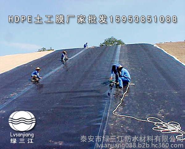 泰安市山东绿三江防水材料有限公司常年生产经营hepe土工膜,产品销往全国各个省市,有的还出口。土工膜产品种类丰富,价格都是同行业最低,生产过程中的每一道工序都经过合格检验,保证生产的产品质量达标,并且都有合格证书,请广大消费者放心购买。近年来,随着hdpe需求的越来越多,市场上出现的土工膜种类也是多种多样,质量参差不齐,所以还请广大购买时认真对比,认准''绿三江''品牌的土工膜。山东绿三江批发销售养殖土工膜 蓄水池专用土工膜