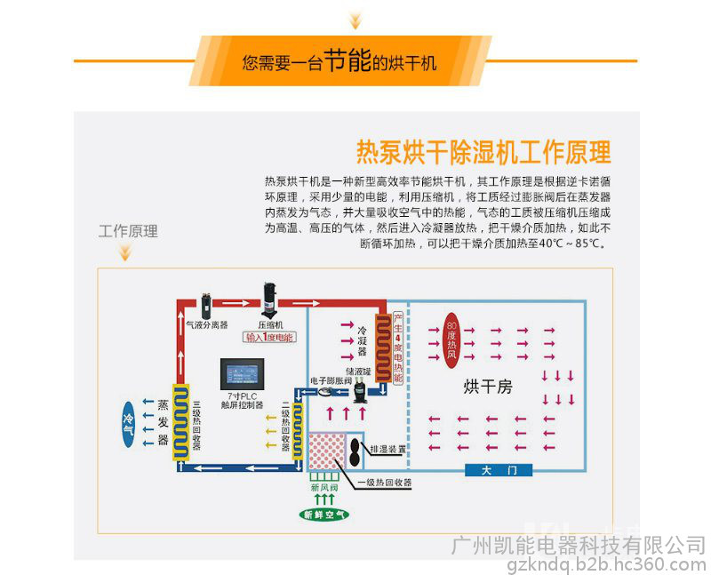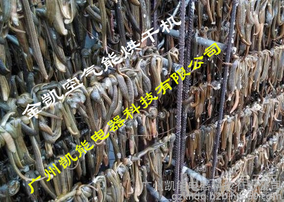 水蛭干燥早几年一般采用太阳晾晒的方式,由于近几年人工繁殖的技术不断成熟,产量较大的时候采用太阳晾晒的水蛭色泽较差、质量很难把控已经很难满足生产的需求。使用水蛭烘干机干燥的水蛭色泽好,药效成分流失少,烘干过程无污染、全程智能控制无需专员看守。金凯水蛭热泵烘干机是利用逆卡诺原理,使用少量的电促使压缩机做功、冷媒通过蒸发器大量吸收空气中的低位热能,通过压缩机转换成高温高压气体,搬运到库房冷疑器通过循环风机将热能释放到烘干房,不断循环加热配合设备自带的除湿装置从而达到节能环保干燥的目的。使用金凯空气能烘干机,一度电可以产生4度电以上热能,是目前**节能环保的烘干设备。