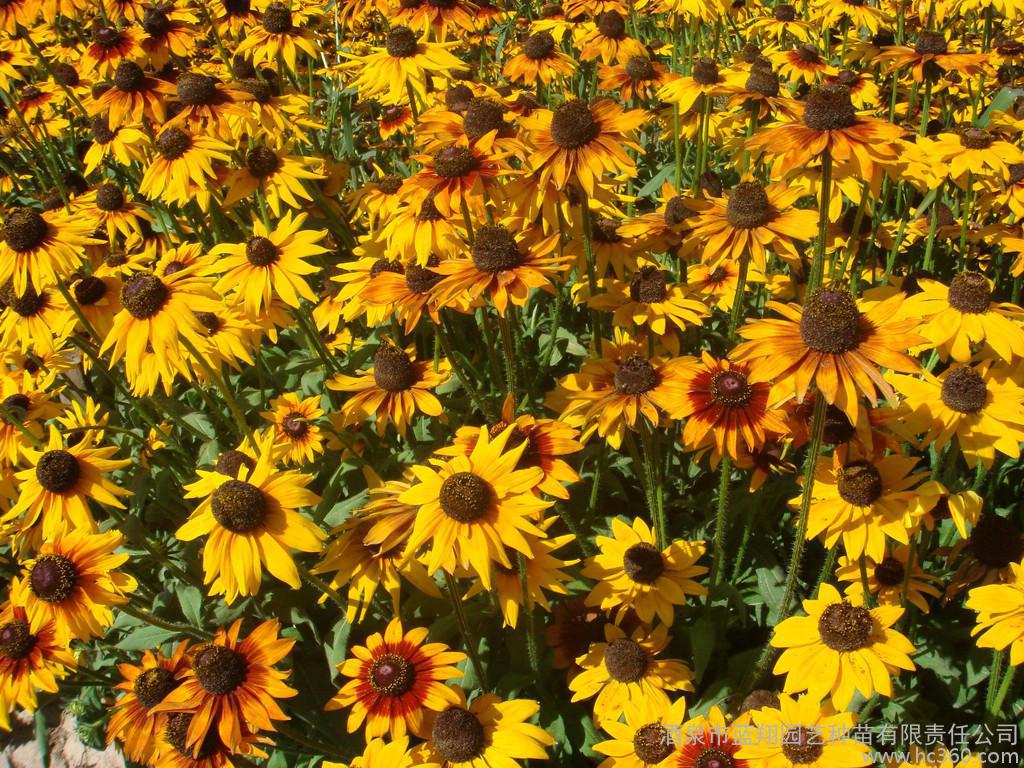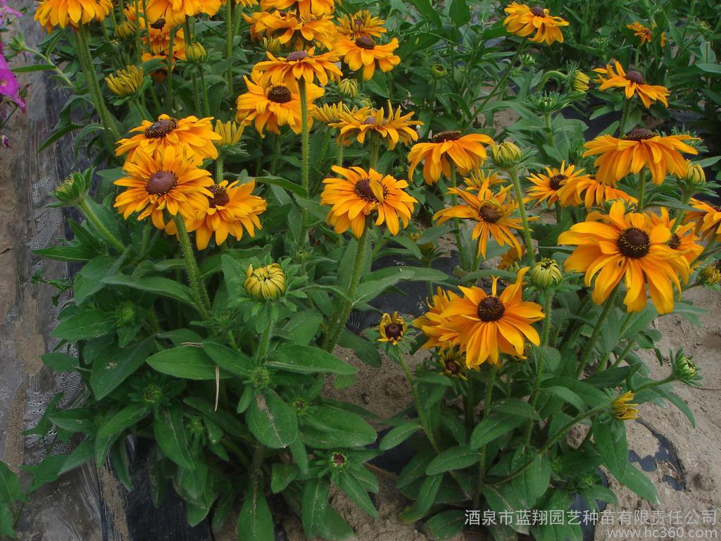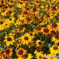 矮杆黑心菊学名:Rudbeckia hista别名:黑心菊科属:菊科金光菊属。原产地:北美用途:多用作庭院布置,花坛丶花境材料,亦宜草地边缘自然式栽植,还可作切花,水养期颇长.1500粒/克特性:多年生草本,.株高25cm,全株被粗毛,上部叶互生,长椭圆形至阔披针形,下部叶近匙形.头状花序,舌状金黄色;筒状花深褐色,半球形.栽培:种子撒播,育苗基质需松软,透气性好,覆沙土约0.2cm,保持湿度,约10-14天出苗。幼苗生长迅速,幼苗3-4枚真叶时带土定植,对肥水要求不高,耐寒丶耐旱;喜向阳通风环境.不择土壤,但在排水良好的砂壤土中生长更佳。