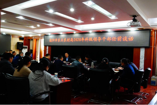 3月27日上午,市农业农村局党组对新选拔任用的科级指点干部中止任前说话,局党组书记、局长张国际从此次干部职务调整的全体思索以及今前任务中要留意的成果与大家交心谈心。