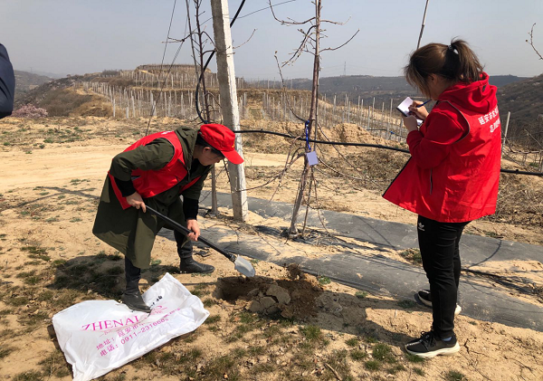 为了探求苹果免果品套袋技术理论运用,促进苹果产业提质增效。市土肥站使用微生物菌肥在果园中止土壤改良苹果免果品套袋技术实验。3月27日,布置业务主干王蓓、刘晶、王海浪同志赴安塞区高桥镇南沟村、宝塔区万花类乡毛堡则村和枣园镇韩家沟村中止土壤样品采集义务。经过采土化验土壤养分状况和供肥才干,为果园土壤改良免果品套袋实验提供依据,确保实验科学有效。