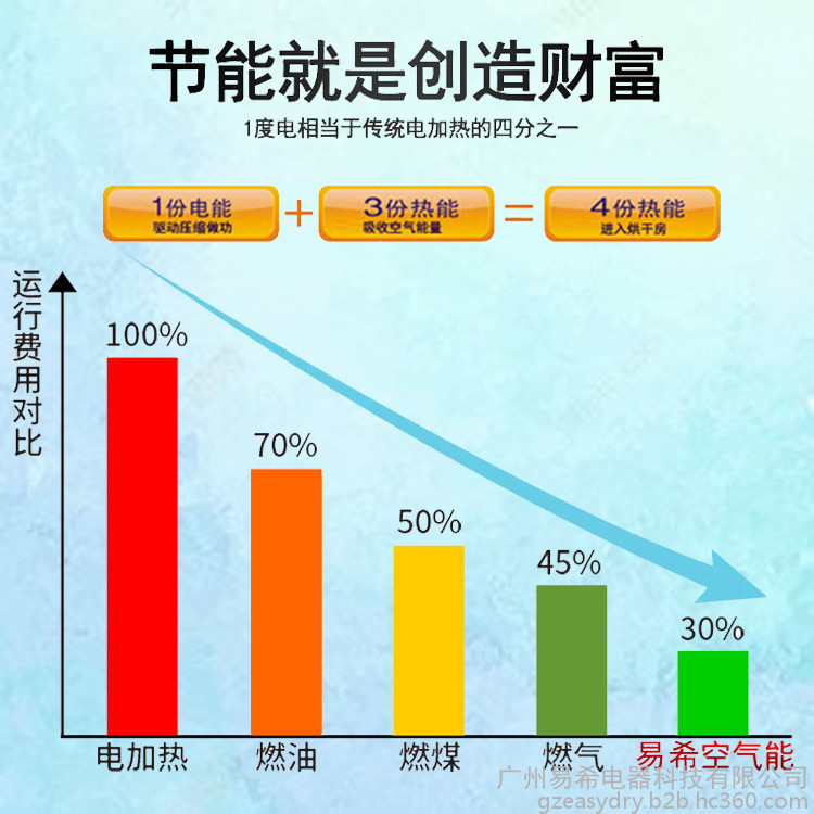 空气能烘干机的热效率为传统煤锅炉机的10倍