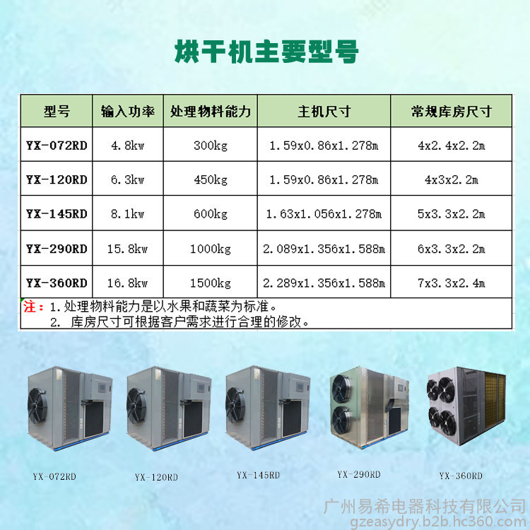 五、农副产品烘干机技术参数&热销型号