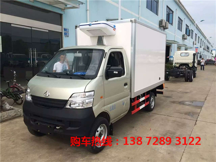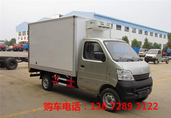 长安2.75米冷藏车 采用长安原装底盘,重庆长安98马力国五发动机。厢体长2.68*宽1.50*高1.55米,厢体采用内彩钢板外玻璃钢,内夹8公分聚氨酯保温材料(保温效果优)。采用国产知名品牌制冷机组,冷藏温度可达-5度~-18度 (图下)