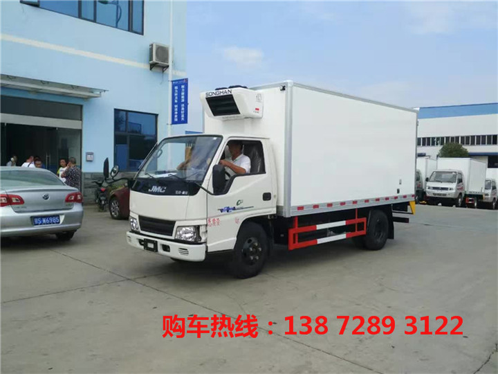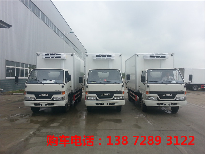 江铃4.18米冷藏车:采用江铃全顺底盘102马力发动机、国五排放标准、700-16钢丝胎、厢体采用内外玻璃钢材料、优质聚氨酯保温材料厢体内尺寸4180*1700*1700(mm),制冷温度0到-15度可自行调节。可选装上海松韩、襄樊汉雪、河南华泰制冷机组 (图下)