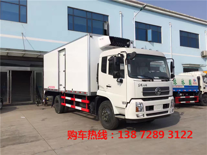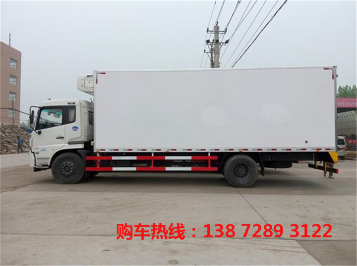 东风天锦冷藏车,货厢尺寸(mm): 7400×2280×2400,采用东风原装底盘,康明斯180马力国五排放电控共轨发动机,6档变速箱,5600轴距,9.00R20轮胎,4.5吨前桥,9吨后桥,带原厂ABS防抱死刹车系统,GPS行车记录仪,全铝280L燃油箱,三锁合一燃油箱锁,是一款高配置的大型冷藏车,承载能力和稳定性强,有效的保证了运输过程中的平稳安全。 (图下)
