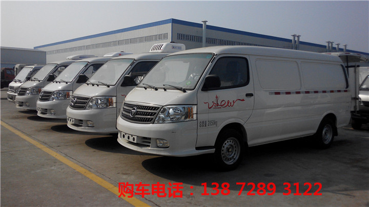 金杯海狮面包冷藏车:采用沈阳新光141马力汽油发动机,符合国五排放标准,2.2排量动力充沛,中央暖风,轿车化内饰,开上去给您家用轿车的感觉。金杯海狮系列冷藏车,沈阳新光华晨汽车4G22D4B汽油发动机,104千瓦,140马力,动转,选装驾驶室空调,2920轴距,195/70R15轮胎,总质量2900,额载970,整备1800。厢体:内外玻璃钢,花纹铝底板,8cm聚氨酯保温,不锈钢门锁件,配后双开门,-5度制冷机组。该车采用顶置冷藏机组。温度为0度至-18度,温度可以任意调节。 (图下)