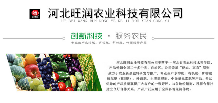 主要成分:N≥12% P2O5≥18% K2O≥25% Ca≥15% Cu+Zn+Fe+B+Mn≥2%植物精华素≥5%生根调节因子≥2%