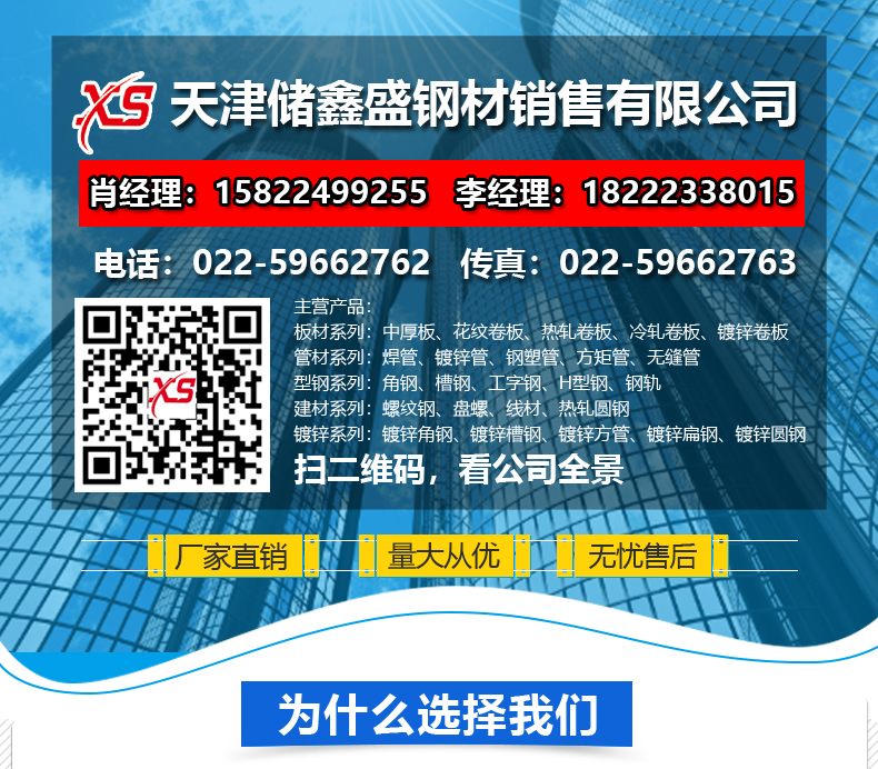 主要销售产品有中厚板、热轧板、花纹板、镀锌板、角钢、槽钢、工字钢、H型钢、焊管、镀锌管、方矩管、无缝管及螺纹钢、线材等,欢迎新老客户来电咨询