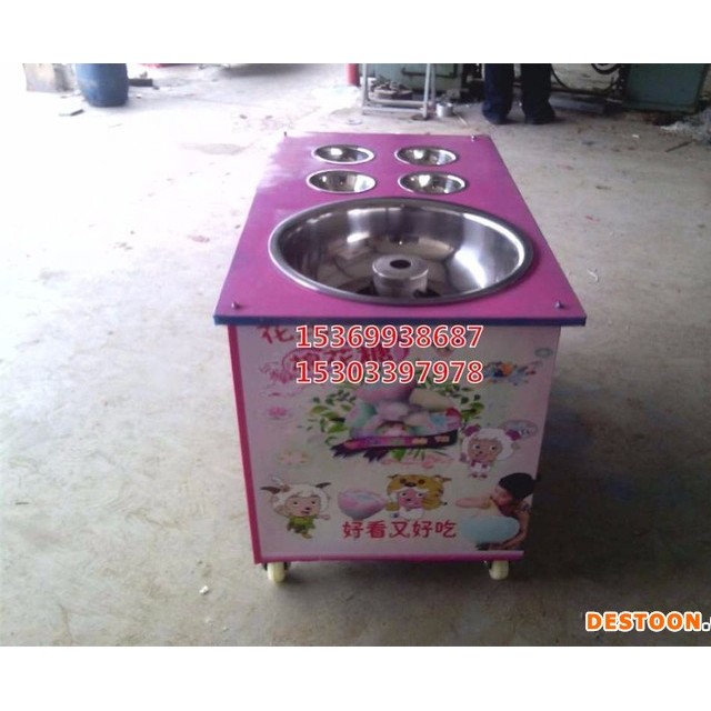 3、该机有减震系统,出糖器转动平稳,噪音小,使用简单方便,无需脚踏,电瓶驱动,适合商用;