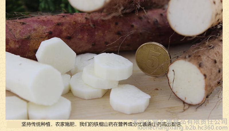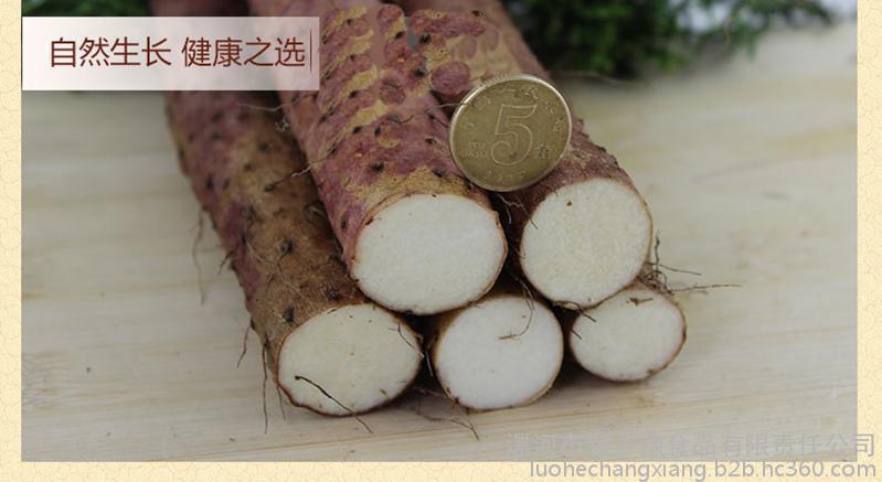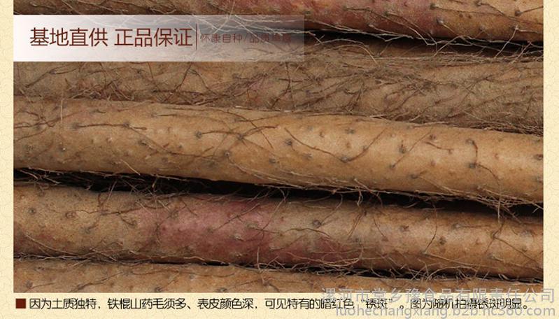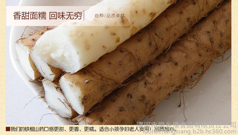 沙土铁棍山药呈圆柱形,长60-80厘米**长可达100厘米以上,直径2.5厘米左右,表皮土褐色,密布细毛,有紫红色不光泽斑。肉极细腻,白里透黄,质坚粉足,粘液质少,久煮不散,味香、微甜、口感特好,久食不烦腻,药食兼用。沙土地山药,外观好看,营养价值和口感好,馈赠佳品的选择。