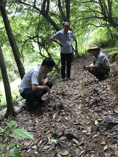 核心提示: 6月3日,龙岩市土壤专用肥料技术站站长、初级农艺师饶火火一行,分开永定区城郊镇双溪村、坎市镇清溪村的灵芝消费基地,实地