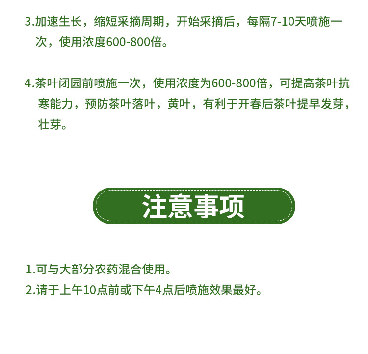 | 喷施时间及次数 | 7-10天喷施一次 |