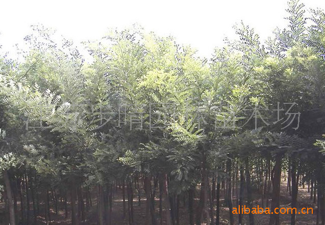 【带皮国槐种子处理和播种方法】国槐主要播种繁殖,也可扦插。春播,因种皮有细胞紧密结合的栅栏层,透水性差,播种前,用始温85-90度的水浸种24小时,余硬粒再处理1-2次。种子吸水膨胀可播种。条播行距20-25厘米,覆土厚度1.5-2厘米,每亩播种量8-10公斤,7-10天幼苗出土,幼苗期合理密植,防止树干弯曲,一般每米长留苗6-8株,一年生苗高达1米以上。也可早春集中营养钵育苗后移植定苗。国槐萌芽力较强,若培养大苗形成良好的干形,可在第二年早春截干,加大株行距,当年苗高3-4米,树干通直,粗壮光滑。