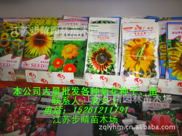 本公司常年供应各种优质种子、种苗、占地用苗、占地苗木。品种有:供应白术种苗、白芍苗、牡丹苗、丹参苗、北沙参苗、黄芩苗、元胡苗、川芎苗、天南星苗、旱半夏苗、甘草苗、紫苑苗、知母苗、射干苗、防风苗、木瓜树苗、金银花苗、核桃树苗、杜仲树苗、连翘苗、板兰根种子、桔梗种子、大黄种子、党参种子、当归种子、黄芪种子、远志种子、白术种子、甘草种子、黄芩种子等。文竹、观赏椒、鸡冠花、向日葵、凤仙、蒲公英、松叶牡丹、古代稀、矮牵牛、茑萝、香豌豆、绸缎花、百日草、千日红。 三、在低温也能生长的(适合寒冷的城市):霍香蓟、金鱼草、蜀葵、香芹、香矢车菊、马兰花、紫罗兰、蒲公英、花葱、香雪球、三色堇、花菱草、花癸、亚麻、黑种草、欧洲报春、蓝雏菊、薰衣草、虞美人、蓝刺头、美女樱 、雏菊、南非万寿菊、荷兰菊。 四、半日照也能生长的(适合室内):勿忘我、风铃花、桔梗、三色堇、康乃馨、情人草、日日春。 五、较高的(株高≥50cm): 荷兰菊、满天星(白色)、蜀葵、醉蝶花、波斯菊、向日葵、彩色玉米、康乃馨、金银茄、情人草、银边翠、宿根亚麻、除虫菊、风铃花、千鸟草、切花香蜿豆、狭叶薰衣草、虞美人、百日草、香矢车菊、蓝刺头、花葵。 六、较矮的(株高<50cm): 香芹、满天星(粉色)、观赏西瓜、朝天椒、松叶牡丹、鸡冠花、盆栽草莓、蒲公英、盆栽番茄、三色堇、藿香蓟、金鱼草、五色菊、三色旋花、石竹、蓝雉菊、凤仙花、香雪球、南非万寿菊、酢浆草、日日春、花葱、雏菊、千日红、紫罗兰、孔雀草、翠菊、五色椒、矢车菊、金鸡菊、绸缎花、花菱草、马兰花、盆栽花烟草、黑种草、天竺葵、孔雀草、美女樱、金盏花、古代稀、贝壳花、矮牵牛、香福禄考、桔梗、白蛋茄、勿忘我。 七、自控高度的(攀爬类): 观赏葫芦、羽叶茑萝、南瓜、文竹、跳舞草、芫荽、含羞草、小苦瓜、观赏黄瓜。 八、特殊种子种植方法: 大粒的种子栽培法(直径在2mm以上):推荐纸巾催芽法,我的相册有图解; 需要浸泡才能更好发芽的种子:蜀葵、文竹、马兰花、葫芦、贝壳花、跳舞草、茑萝、香豌豆、薰衣草、千日红、重瓣牵牛花、美女樱、含羞草。另外种子外壳有毛或蜡质的,须用细砂磨去,再浸泡,例如跳舞草、千日红、玫红永生菊等,详细看栽培资料; 不需要覆土播种的种子:霍香蓟、紫罗兰、矮牵牛、花烟草、风铃花、雏菊等。
