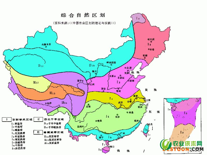 中国农业生态区划示意图