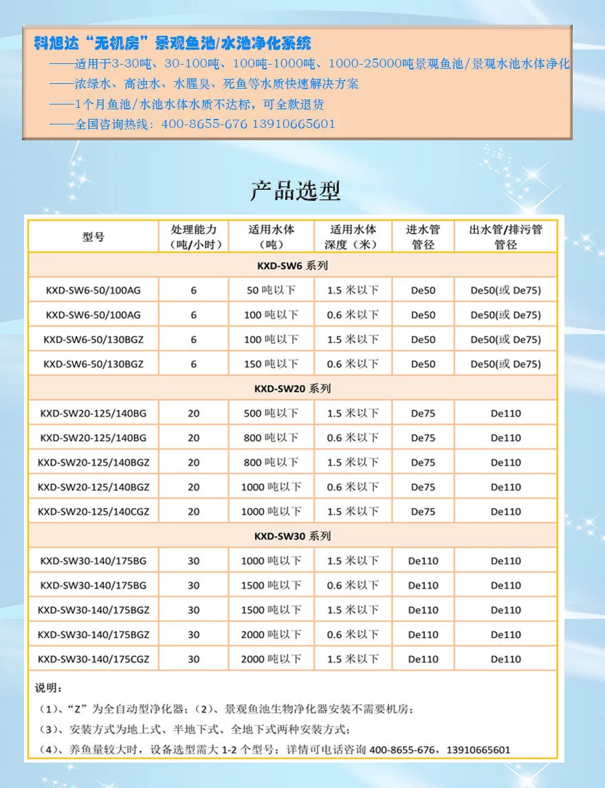 完善的过滤系统对锦鲤鱼池水质非常重要性,锦鲤鱼在所有观赏鱼中属于很好养的鱼种之一。。“科旭达景观鱼池水处理净化”水质解决方案,景观鱼池生物净化器,除藻效率95%以上,大幅降低鱼池水体色度,水体观赏效果好,景观鱼池生物净化器,除藻效率95%以上,大幅降低鱼池水体色度,水体观赏效果好,景观鱼池生物净化器,能有效去除水体中的泥皮、泥苔和浮沫,让鱼池水面清洁。景观鱼池生物净化器,除浊率98%以上,能见度≥1.5米,鱼池水质清澈洁净,锦鲤鱼在所有观赏鱼中属于很好养的鱼种之一。,景观鱼池生物净化器,能有效去除水体中的泥皮、泥苔和浮沫,让鱼池水面清洁,“科旭达景观鱼池水处理净化”水质解决方案,景观鱼池生物净化器,能有效去除水体中的泥皮、泥苔和浮沫,让鱼池水面清洁。物理过滤主要的是清除能看的见、不溶于水的物质。通俗来讲**是:将水中的不溶解物质、废物过滤出来。,物理过滤主要的是清除能看的见、不溶于水的物质。通俗来讲**是:将水中的不溶解物质、废物过滤出来。,