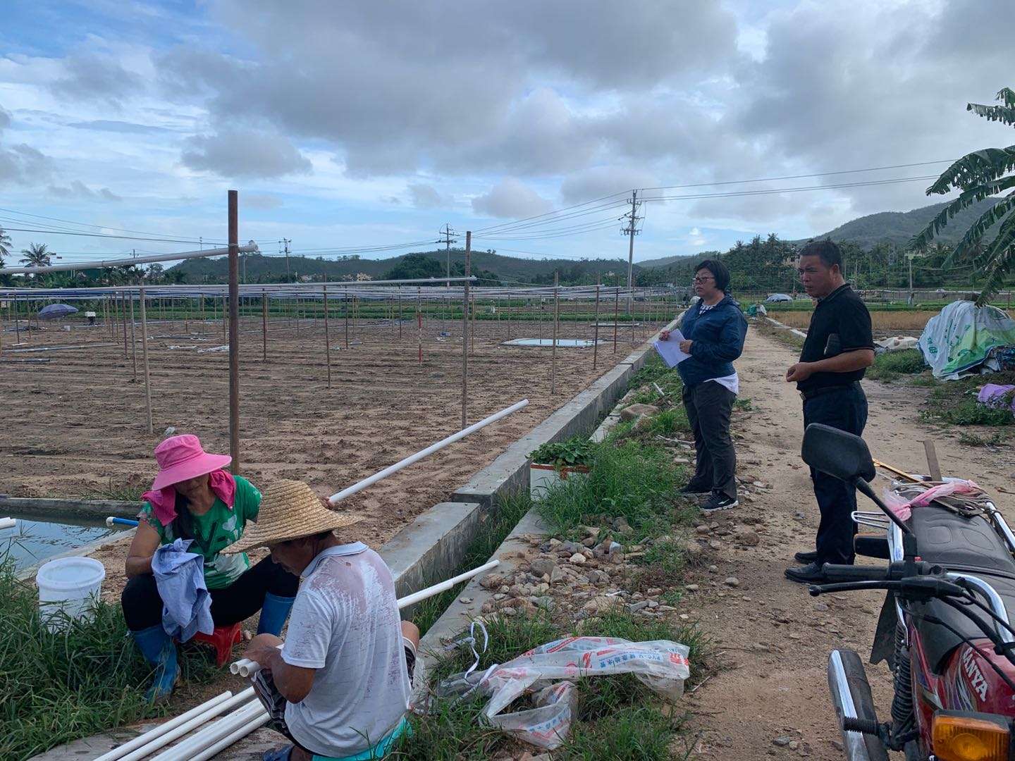 在扎业、木棉扎业基地,曲环副局长、陈金波主任现场反省天涯区终年蔬菜主干基地树立预备情况。并指点扎业、木棉扎业终年蔬菜基地种植大户展开基地树立。