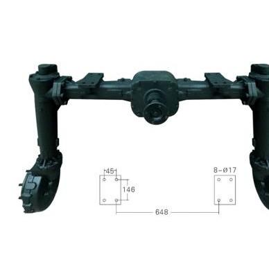 东北打药机前桥,◆带有手动式差速锁,提高了在恶劣环境条件下的通过能力;(可选) ◆采用了中置式传动轴,摆动式中央摆销; ◆内部结构包括中央减速,传动差速器和末端双锥齿轮减速;采用整体式桥壳,刚性好; ◆采用中置式油缸,结构紧凑,美观新颖; ◆末端与主销转向采用复合材料滑动轴承结构,转向轻便灵活; ◆采用独立油路,全液压转向,转角可达50°; ◆配套有高、中、低三种驱动桥可满足不同植保机通用性; ◆适合配套30-55马力的植保机。