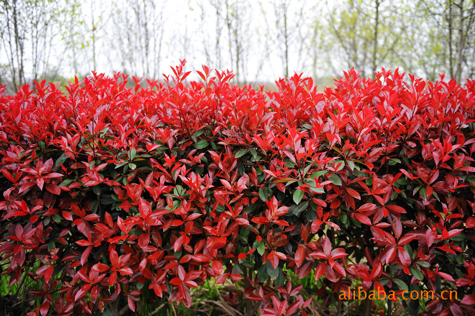 鲁宾斯:叶片相对较小,一般为9厘米左右,分枝能力一般,叶片枝条比红罗宾、红唇、强健要小,叶片表面角质层较薄,叶色亮红,但光亮程度不如红罗宾。一年生枝条颜色灰暗,春季叶片显红的时间比其他品种要早7天~10天,红叶的时间比其他品种长10天左右。春天新叶红似火漆。秋后叶色鲜红。抗性比其他品种强,相对较耐寒,最低可耐-18℃低温。