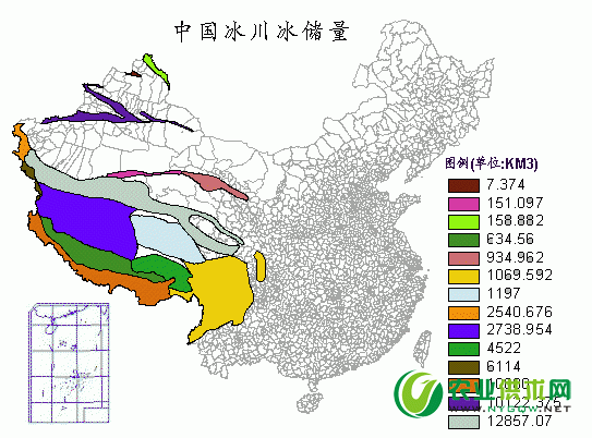 中国冰川存储量分布图