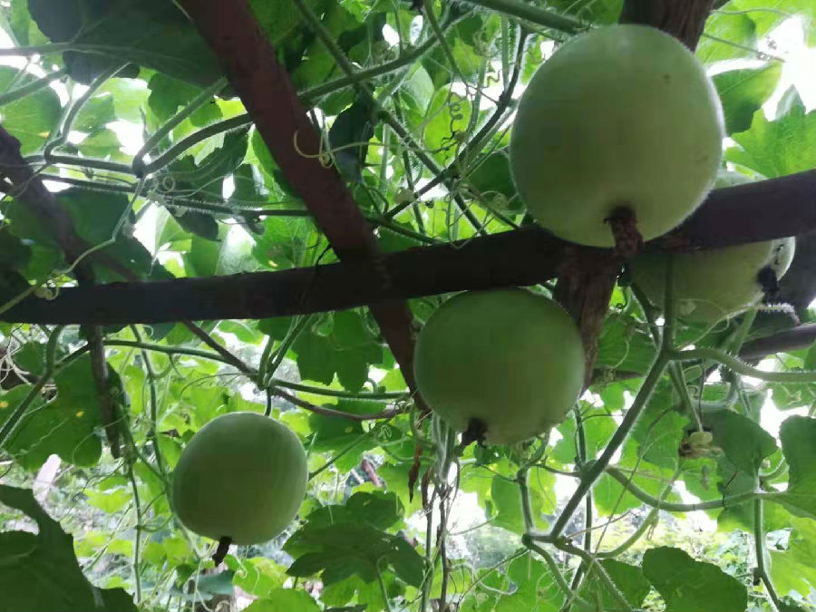 【香芋冬瓜】迷你小冬瓜/食用小冬瓜种子包装:种子袋包装简介:香芋冬瓜/迷你小冬瓜皮色青绿美观,个体适中,营养价值较高,口感好,肉厚清甜,有一股香芋的味道,耐贮藏,市场上售价比常规空心冬瓜高出几倍甚至十几倍,适合做冬瓜炖盅,是酒楼、餐厅等高档饮食场所的必备菜肴。用途:商业种植生产香芋冬瓜在台湾的报道: 一般冬瓜都是长在地上,但台南佳里镇却有种冬瓜不但长在树上,还会散发出淡淡的芋头香味,它的大小像是瓠瓜,浅绿色的表皮光滑细致,瓜肉吃起来更是鲜甜还带芋头香,不论是煮汤或生吃都很美味。 冬瓜原本的家是长在地上的泥土里,可是现在冬瓜搬新家了,从平房改住大楼,从地上改住树上,走进这座冬瓜树园,每颗结实饱满的冬瓜居然都高挂在树枝上,一颗颗好像拳击手的沙包一样,这是台南佳里镇的新品种芋香冬瓜,种苗研究专家把这种芋香冬瓜的种子交给农民培育,没想到两个月的时间,结合芋头的冬瓜就可以收成了。 剖开一看,芋头冬瓜肉白细透亮,烹煮时间比一般冬瓜还要短,只要水滚後煮个五分钟,就可以煮透,方便又好吃,一般的冬瓜因为重量重,都长在地上,但新品种冬瓜直接长在树上、收成很方便,而且浅绿色的表皮光滑细致,瓜肉吃起来还带有淡淡的芋头香,成了冬瓜界的明日之星