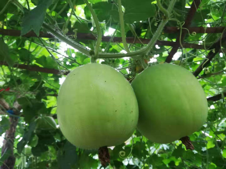 【香芋冬瓜】迷你小冬瓜/食用小冬瓜种子包装:种子袋包装简介:香芋冬瓜/迷你小冬瓜皮色青绿美观,个体适中,营养价值较高,口感好,肉厚清甜,有一股香芋的味道,耐贮藏,市场上售价比常规空心冬瓜高出几倍甚至十几倍,适合做冬瓜炖盅,是酒楼、餐厅等高档饮食场所的必备菜肴。用途:商业种植生产香芋冬瓜在台湾的报道: 一般冬瓜都是长在地上,但台南佳里镇却有种冬瓜不但长在树上,还会散发出淡淡的芋头香味,它的大小像是瓠瓜,浅绿色的表皮光滑细致,瓜肉吃起来更是鲜甜还带芋头香,不论是煮汤或生吃都很美味。 冬瓜原本的家是长在地上的泥土里,可是现在冬瓜搬新家了,从平房改住大楼,从地上改住树上,走进这座冬瓜树园,每颗结实饱满的冬瓜居然都高挂在树枝上,一颗颗好像拳击手的沙包一样,这是台南佳里镇的新品种芋香冬瓜,种苗研究专家把这种芋香冬瓜的种子交给农民培育,没想到两个月的时间,结合芋头的冬瓜就可以收成了。 剖开一看,芋头冬瓜肉白细透亮,烹煮时间比一般冬瓜还要短,只要水滚後煮个五分钟,就可以煮透,方便又好吃,一般的冬瓜因为重量重,都长在地上,但新品种冬瓜直接长在树上、收成很方便,而且浅绿色的表皮光滑细致,瓜肉吃起来还带有淡淡的芋头香,成了冬瓜界的明日之星