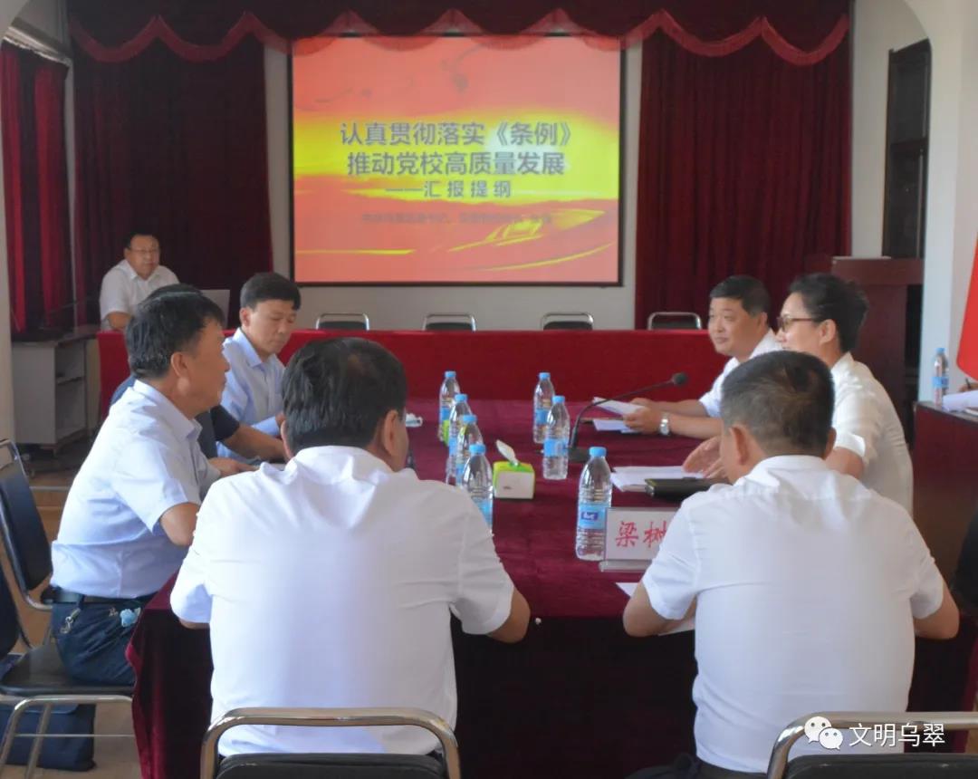 8月19日下午,黑龙江省委党校(行政学院)调研组,省委党校(行政学院)副校(院)长韩健鹏、业务指点处处长侯海山一行就贯彻落实《中国共产党党校(行政学院)义务条例》和全国党校(行政学院)校(院)长会议肉体情况到乌翠区委党校中止专题调研。区委书记、党校校长张巍、区委常委、组织部长、区委党校第一副校长赵鑫及市、区两级党校相关担任同志、区委党校部分教员、学员代表参与了座谈。