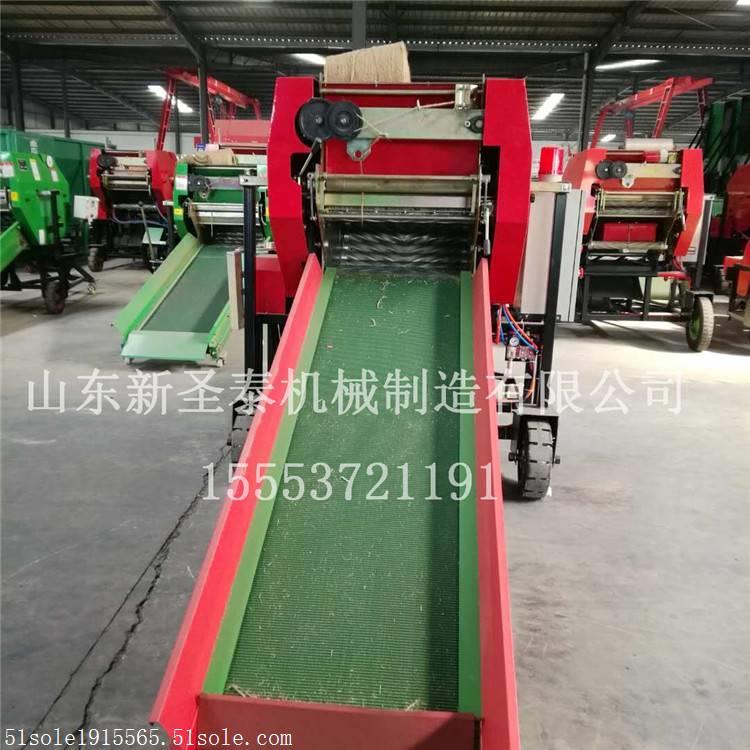 圣泰牌青贮打捆包膜一体机建议用人3人,一人送料,一人开仓方捆和包膜,一人推走摆放。本机器与传统机器相比,节省人工60%,每45秒一捆,每24秒包膜2层/48秒包膜4层,成捆效率增长21%,包膜效率增长40%,成捆重量达60-100kg。