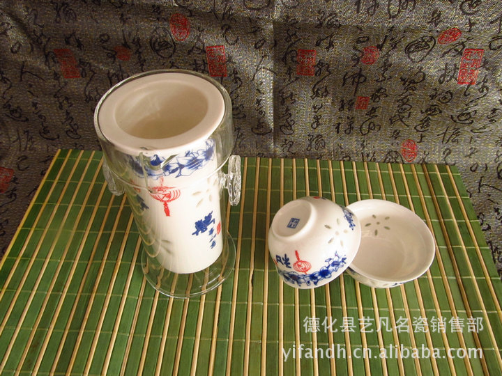 【产品特点】:玲珑瓷是在瓷器坯体上通过镂雕工艺,雕镂出许多有规则的玲珑眼”,然后 以釉烧成后这些洞眼成半透明的亮孔,十分美观,被喻为“卡玻璃的瓷器”。因为“玲珑”的本义就是灵巧,明彻、剔透,所以以玲珑称这种瓷器是非常确切的。