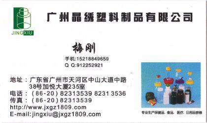 广州晶绣塑料制品有限公司是专业生产塑料瓶的厂家,产销送一体化服务!以PET、PE、PS、PP为原料,生产1毫升--4500毫升的塑料瓶、塑料壶、塑料罐,公司有近1000套瓶型选择,撕拉瓶、PET瓶、PE瓶、PS瓶、亚克力瓶、安全盖瓶、保健品瓶、食品瓶、调料瓶、酱料瓶、鸡汁瓶、辣鲜露瓶、大口瓶、小口瓶、液体瓶、避光食品瓶、大容量瓶、透明瓶,可供客户系列挑选,封口处可配铝箔垫片、压敏垫片(自封垫片),报价时均不含垫片价格,需要配垫片要另行说明;公司自成立以来,服务2000家国内公司,感谢他们对我们的信任,我们将尽心尽力竭诚服务;需要在网上下单的客户请先咨询价格,以上报价为参考价,具体价格以寄样品为准。另承接来样加工注塑、吹塑业务,调色配盖、丝印LOGO、瓶身印花,交货及时,12天内发货,不拖货期,产品质量保证、价格合理,欢迎新老客户来厂参观指导、来电来函咨询洽谈,全体员工竭诚为您服务!您的需求是我们努力的追求,您的满意是对我们工作的肯定,您的要求我们会竭尽全力去配合完成。