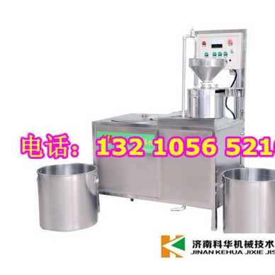 本机由分离式磨浆机、盛浆桶、盛渣桶、蒸汽包等组成,采用高灵敏的IC离子感焰装置,意外熄火时自动切断气源,由温控仪控制煮浆桶温度达到自动点火加热。自动加水由液位控制器和电磁阀控制蒸汽包水位。首先将浸泡好的黄豆由高速分离电磨加工,排出豆渣,产生的豆浆经过蒸汽加热达到去腥、均质煮浆,及添加辅助原料消泡、乳化、凝固、成型处