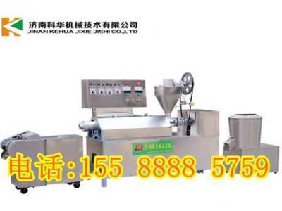 全自动豆皮机器--成型原理: 采用数显温控装置,通过专用减速机带动螺旋挤压喷爆器使蛋白质变性挤出成型。全自动豆皮机器===原料种类: 豆粕、豆饼、豆粉、面粉等。