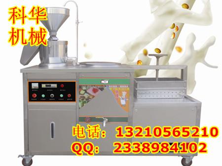 本机由分离式磨浆机、盛浆桶、盛渣桶、蒸汽包等组成,采用高灵敏的IC离子感焰装置,意外熄火时自动切断气源,由温控仪控制煮浆桶温度达到自动点火加热。自动加水由液位控制器和电磁阀控制蒸汽包水位。首先将浸泡好的黄豆由高速分离电磨加工,排出豆渣,产生的豆浆经过蒸汽加热达到去腥、均质煮浆,及添加辅助原料消泡、乳化、凝固、成型处