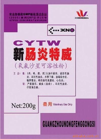 功能主治:主要用于畜禽细菌和支原体感染。主治禽大肠杆菌病,顽固性肠炎,坏死性肠炎,水样下痢,肠毒综合症、输卵管炎,鸭传染性浆膜炎,心包炎;猪严重腹泻,痢疾,坏死性肠炎,仔猪黄白痢等。
