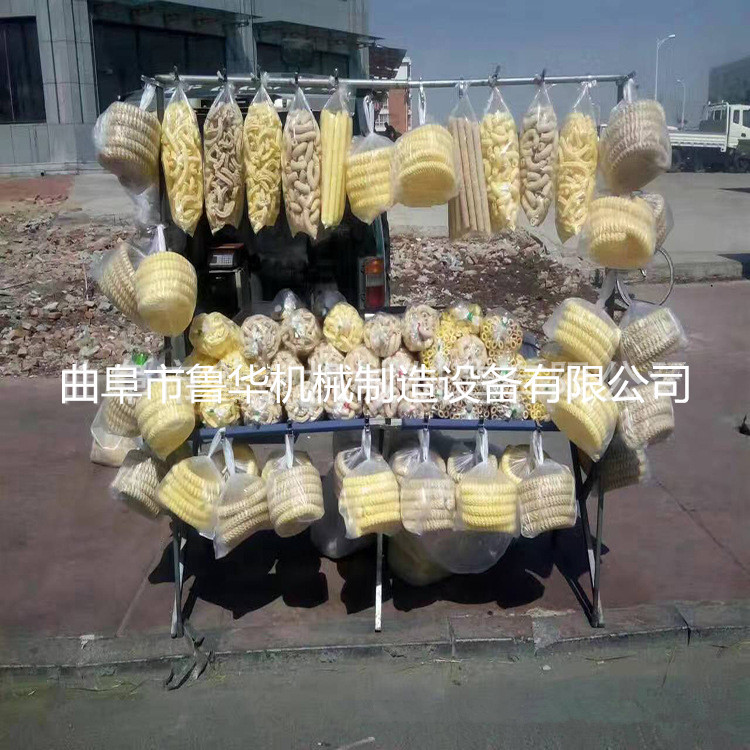 以大米、玉米、高粱米、黄米等为原料,并可添加各种调料,利用自身发热能将原物膨化成90倍以上好滋味膨化果。启用动力后加入原料**可生产出空心棒形、花生形、饼干形形、小米花形、花形、小麻花形、梅花形、等7种各种形状各异的膨化果,果实香酥甜脆,老小皆宜。如另外配上模具可加工五角星形、四方形、绿豆形、菱形、锅巴形、火柴盒形等膨化果,膨化出的产品形状多样化,并具有自断成形装置,时产量25-50公斤,同时膨化出的玉米花型可制作。随机配有模具头和机器使用操作说明书。该机以体积小、重量轻、结构精巧、操作技术简单和可观的经济效益,赢得了广大用户的青睐。